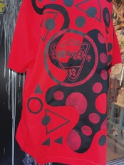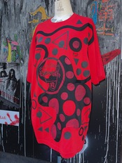 【ぜつきぐ】リメイク×シルク ぜつきぐ☆まるさんかくしかくくにゃTシャツ 赤×黒