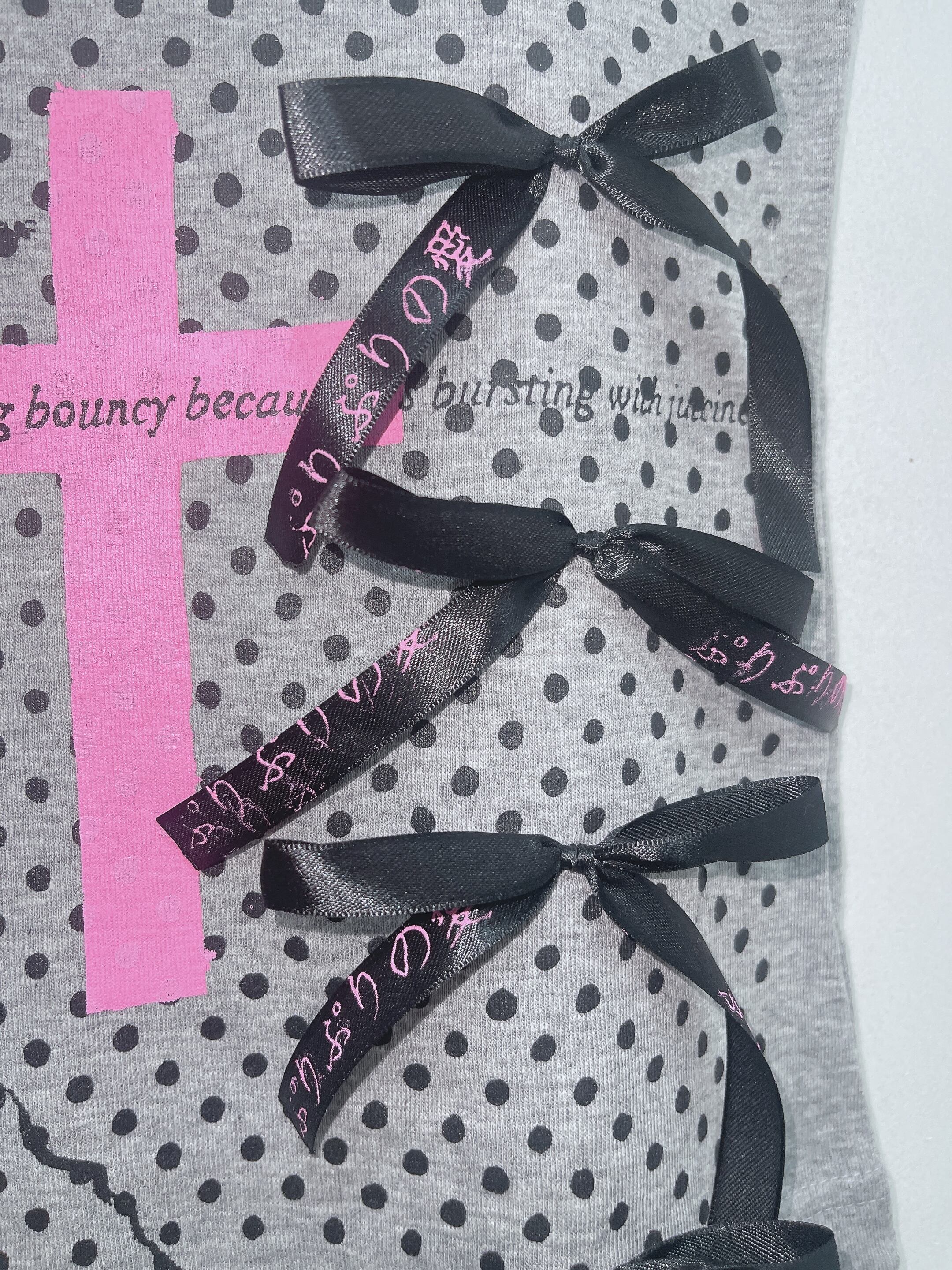 こちらはシルクスクリーンと手縫いリボンをつけて制作しました