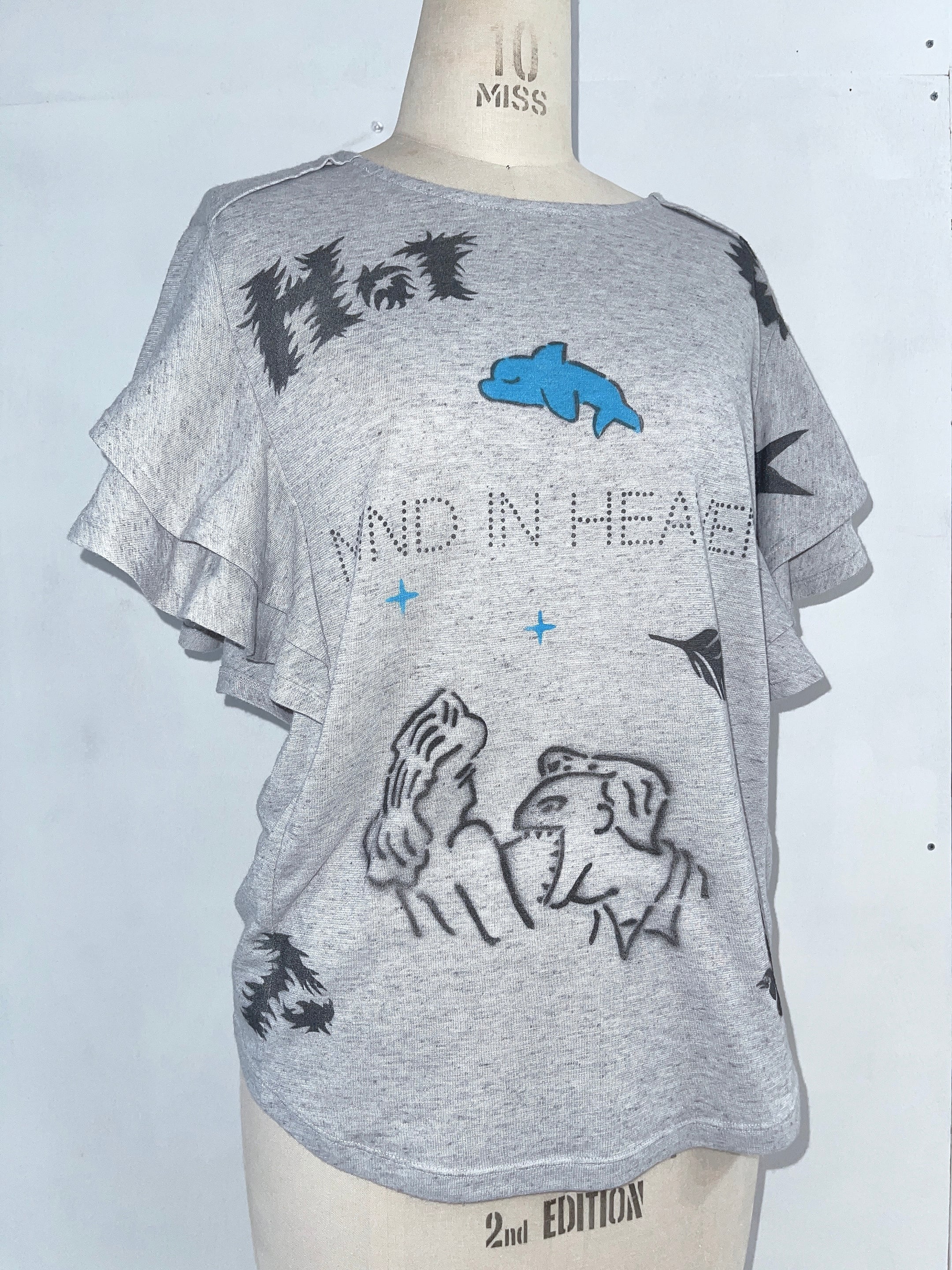 【パーフェクトプラン】ステンシルTシャツ 袖フリル