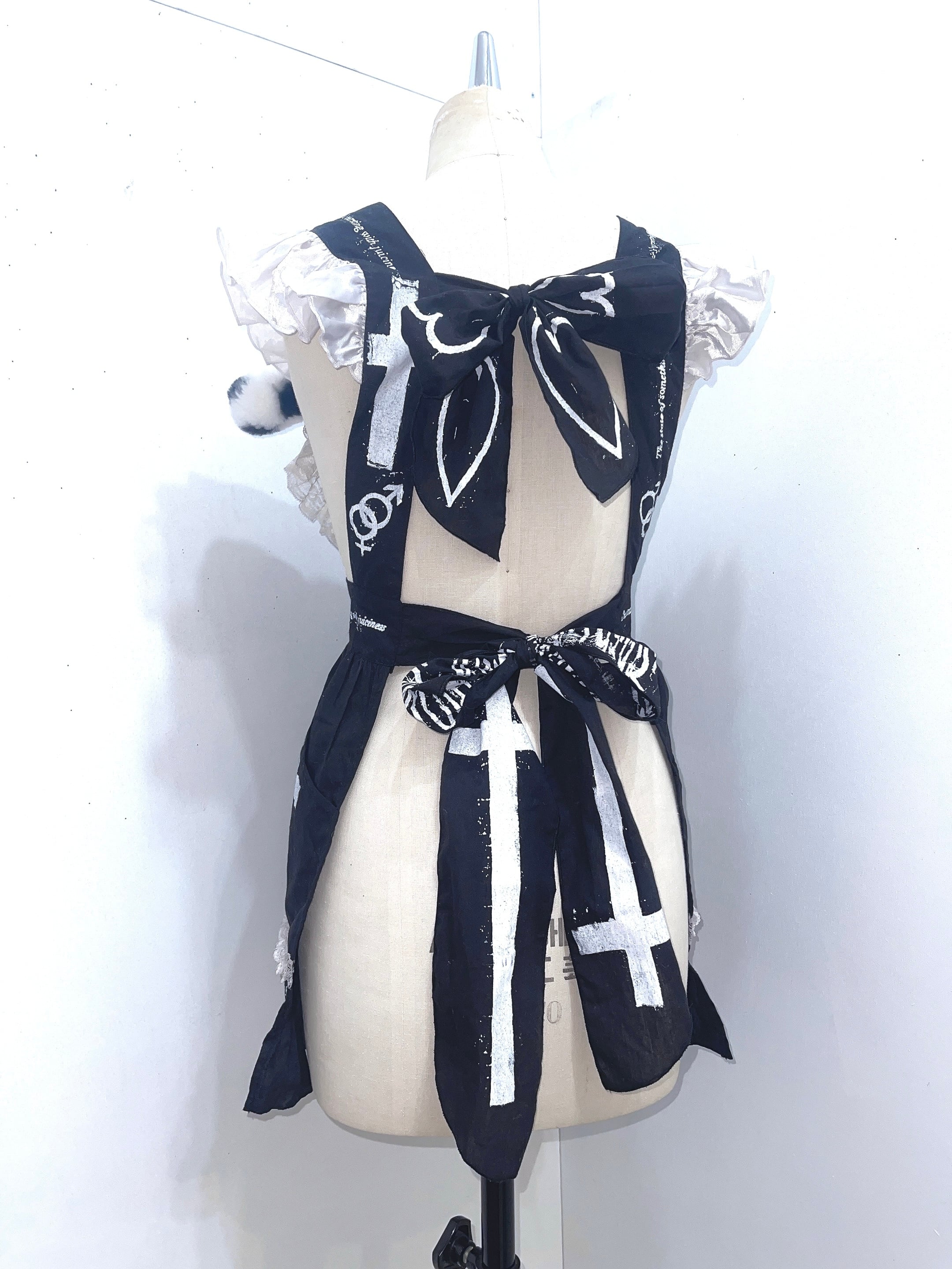 ウエストはリボン紐で結んで調節してください