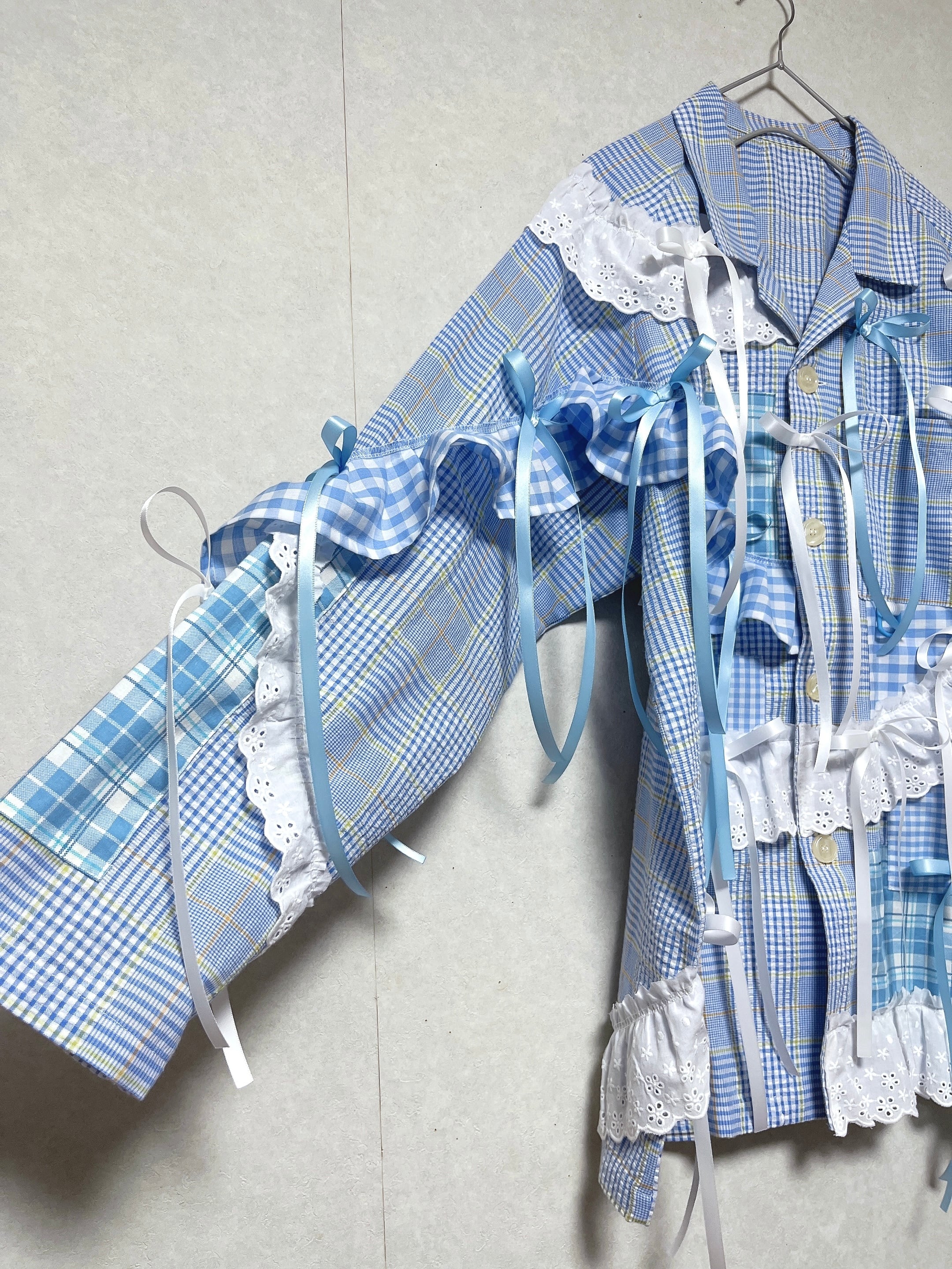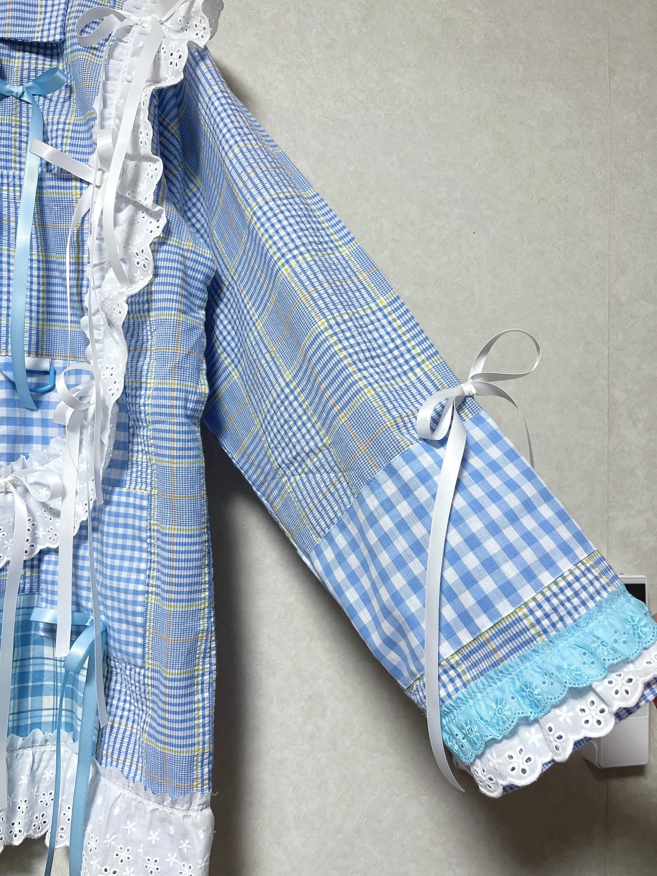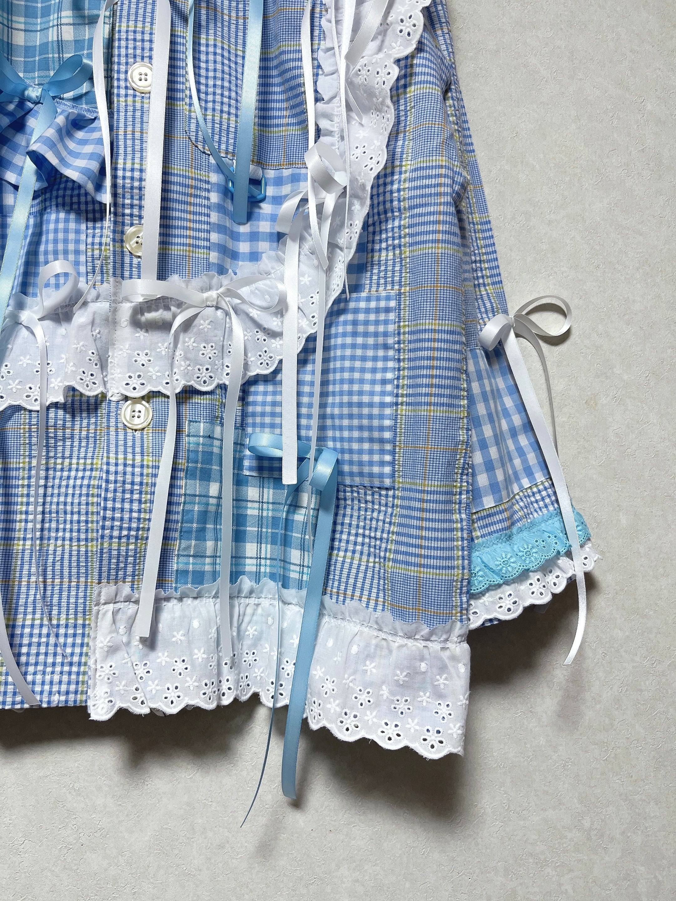 ギンガムチェックフリルは生地から制作