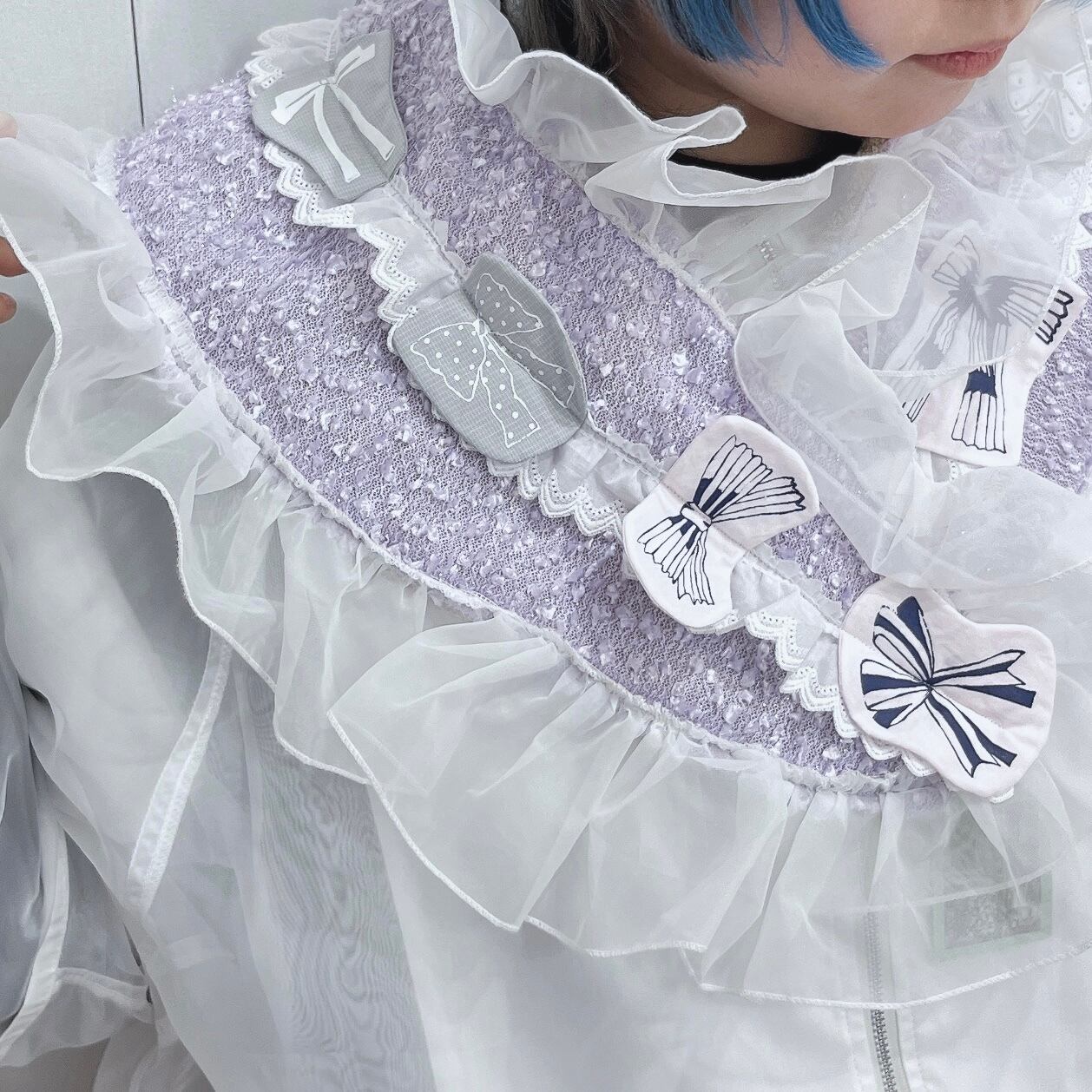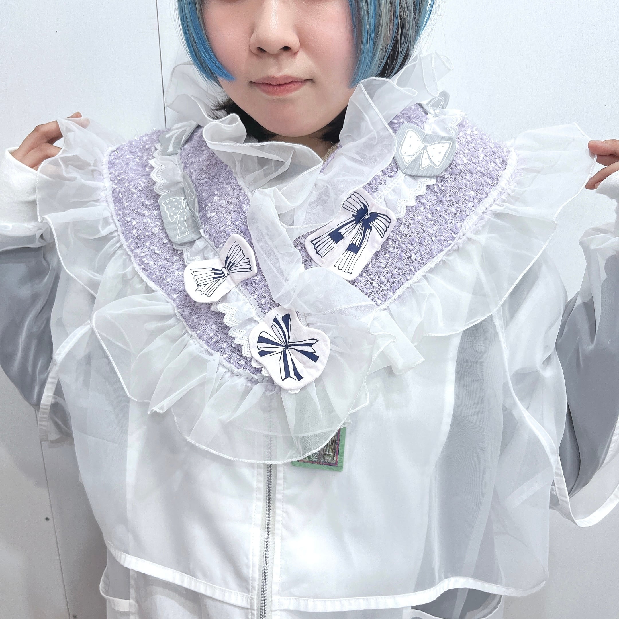 【十万兆ろんぐへあ】フリルりぼん首巻き(紫)
