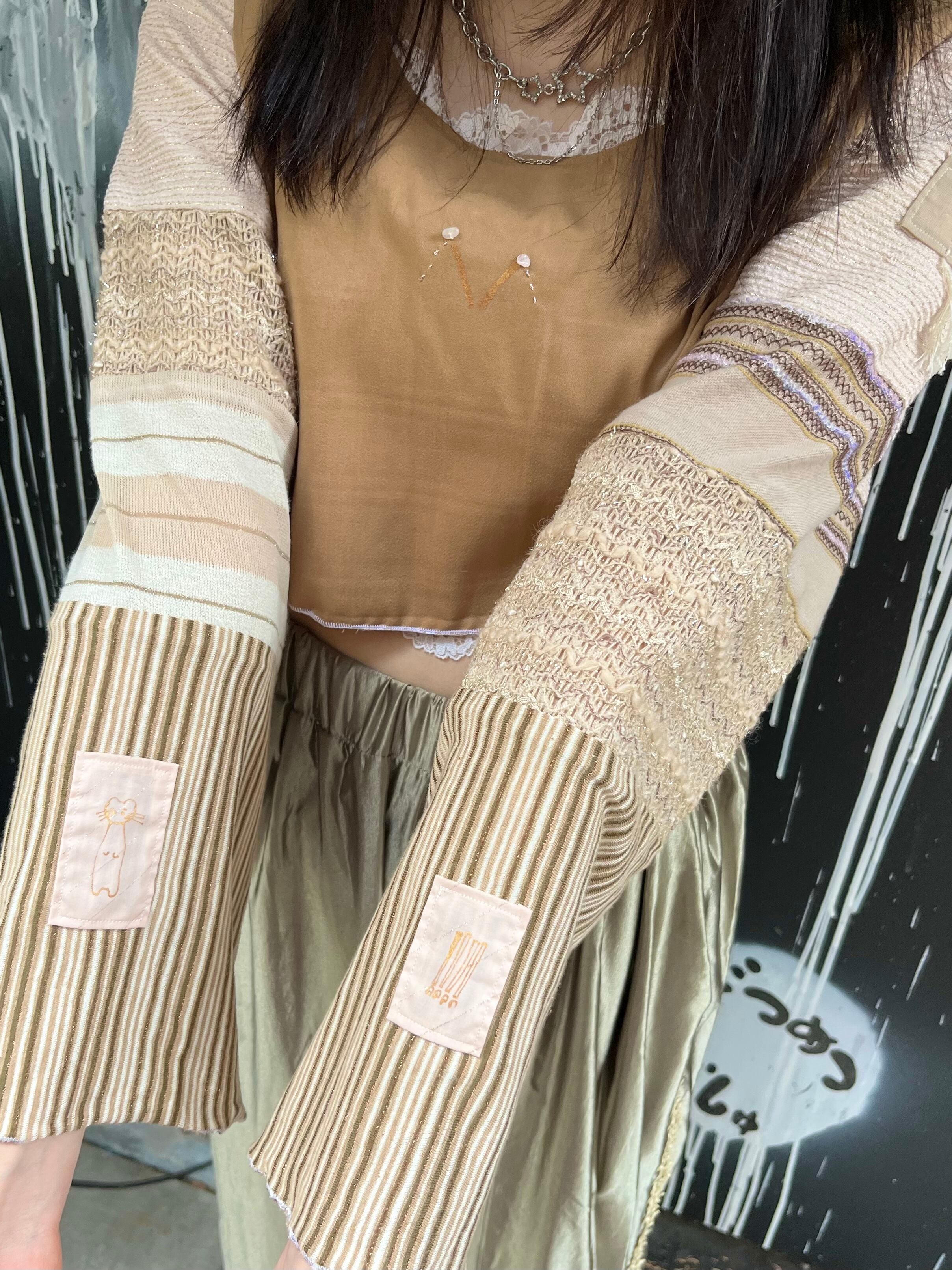 【十万兆ろんぐへあ】つぎはぎトップス (短) 茶