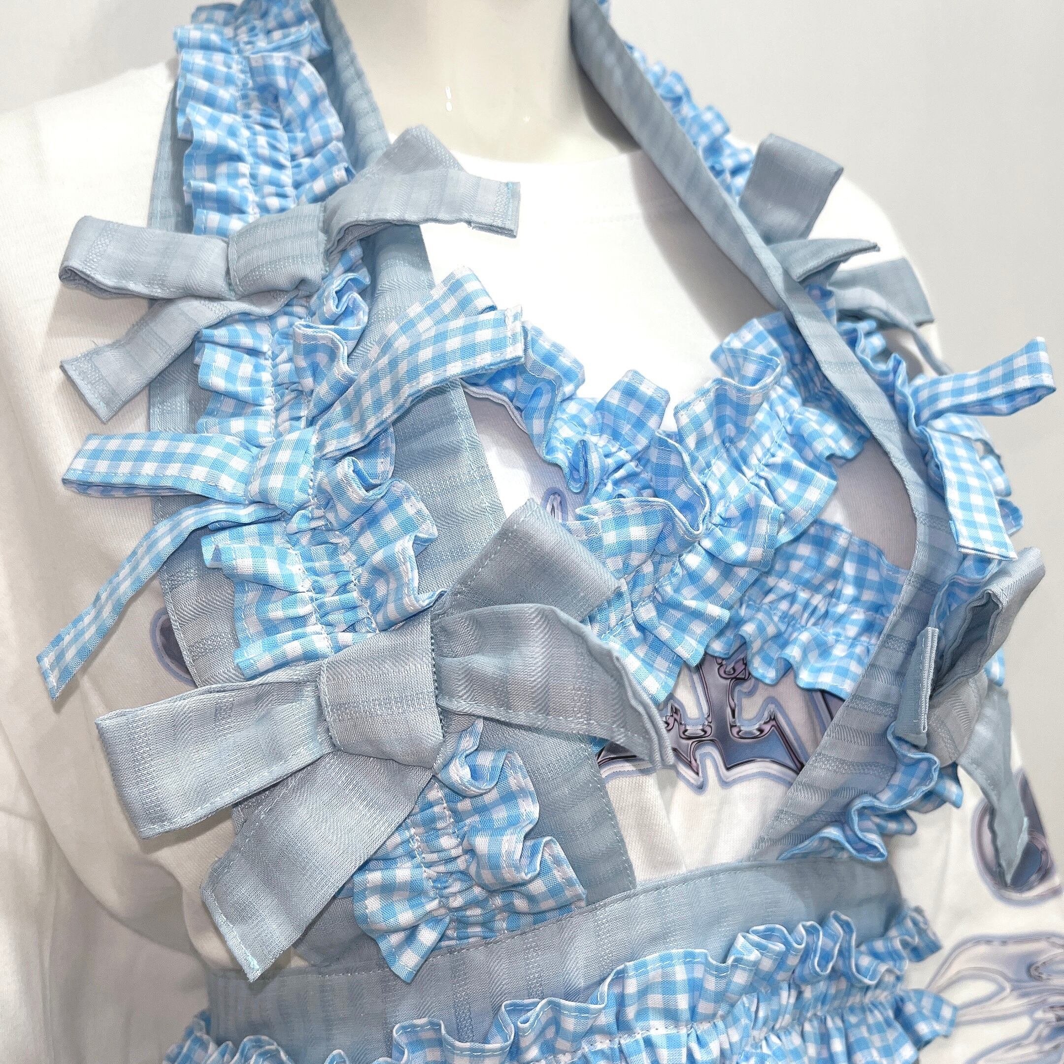 【十万兆ろんぐへあ】フリルりぼんエプロン(水色)