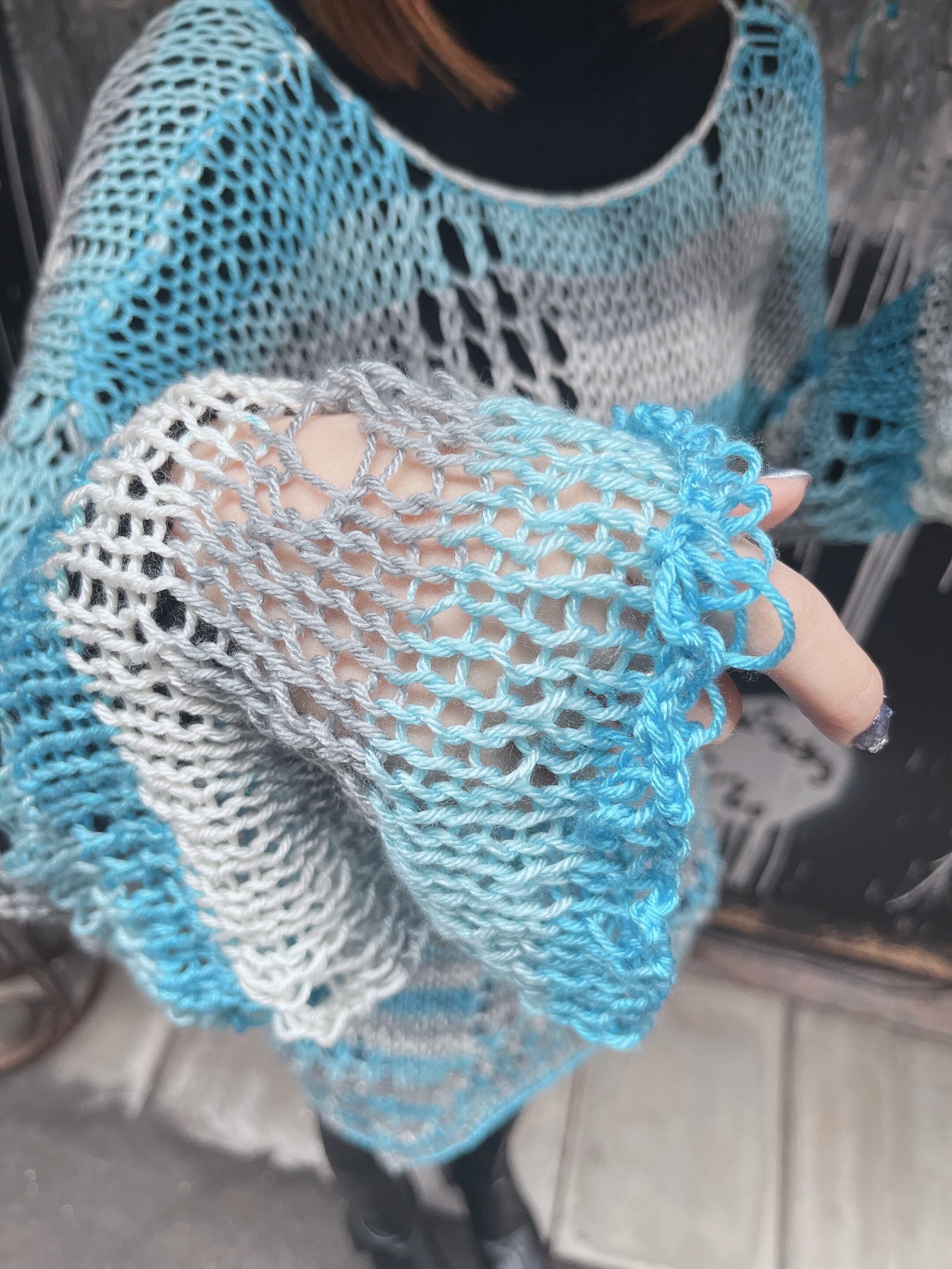 【ラッキー大吉】グラデーションニット 水色